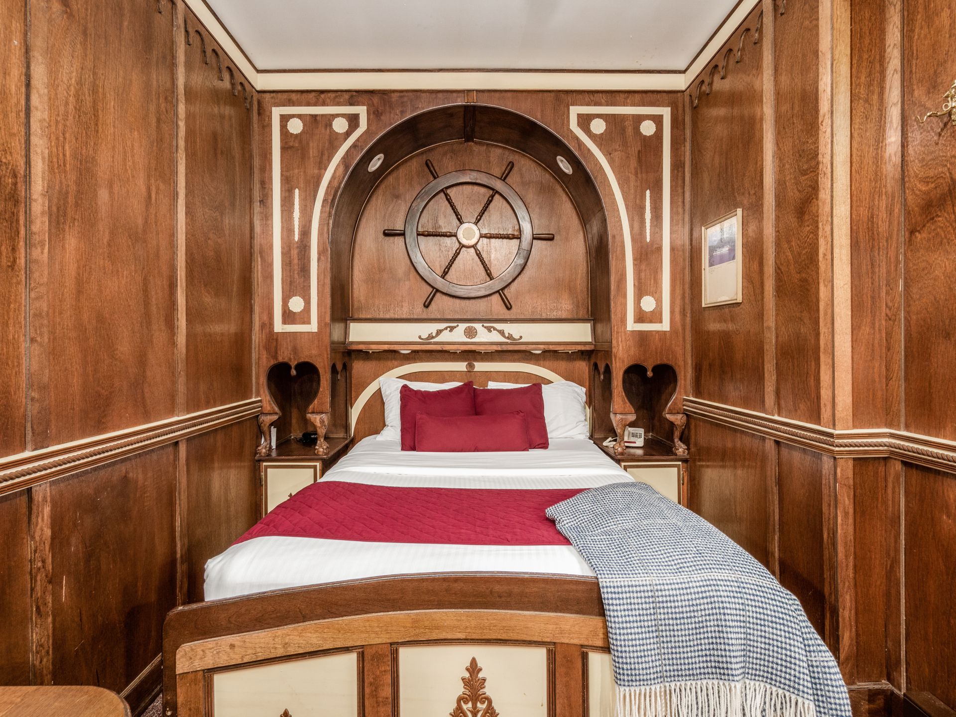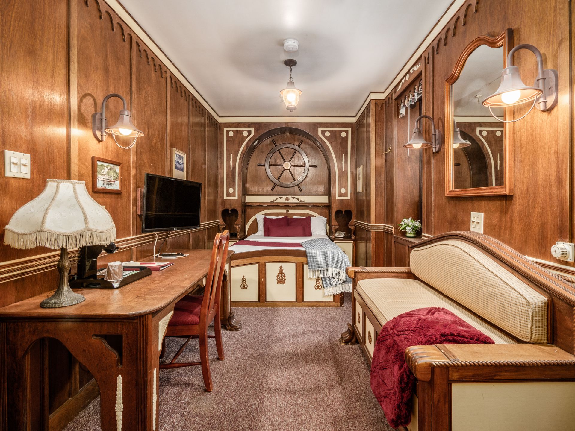 Cabin Rooms provide a distinctive ambiance, evoking a cozy cabin atmosphere that entices guests to immerse themselves in the nostalgic charm of a historic riverboat cabin.