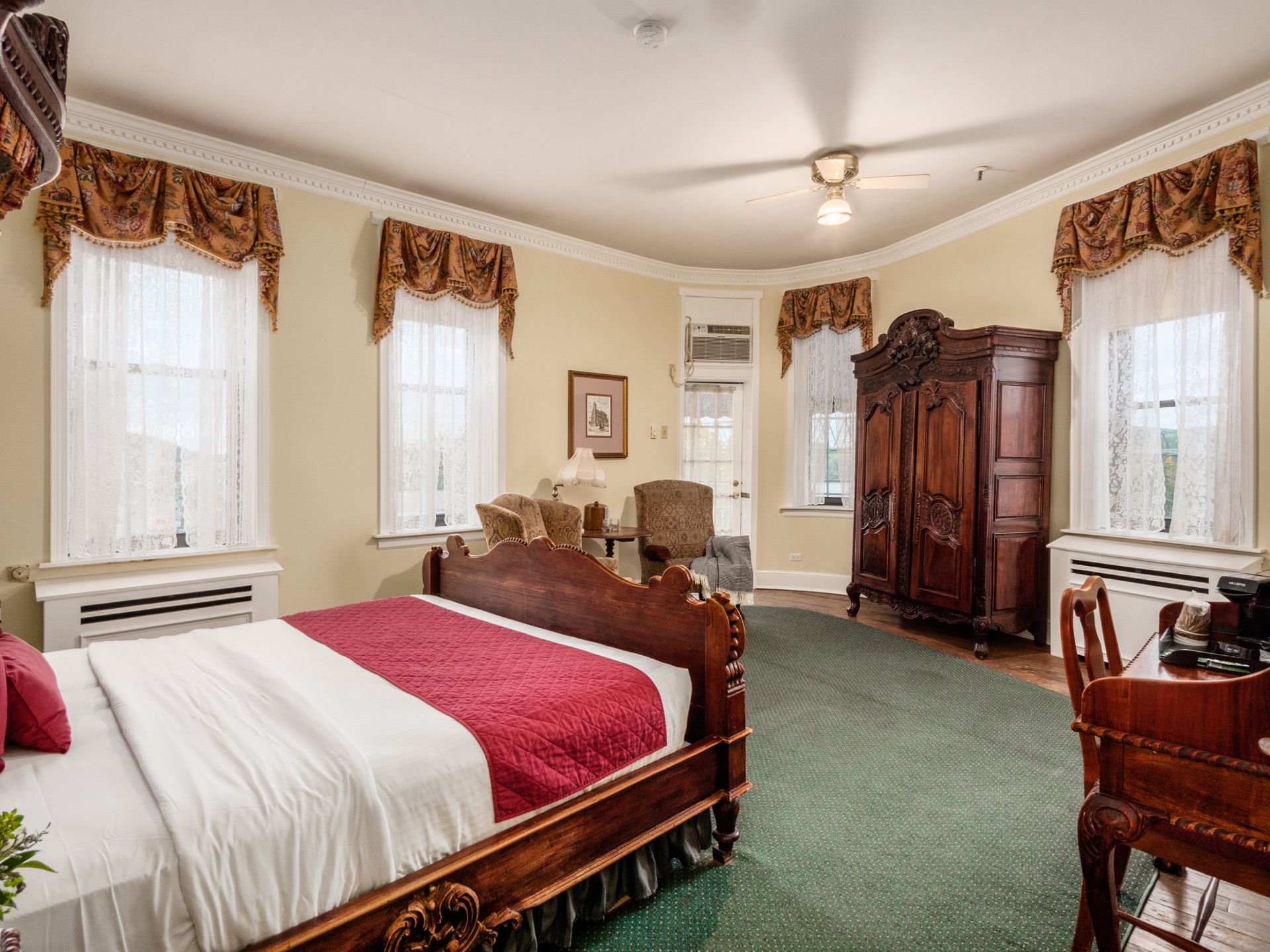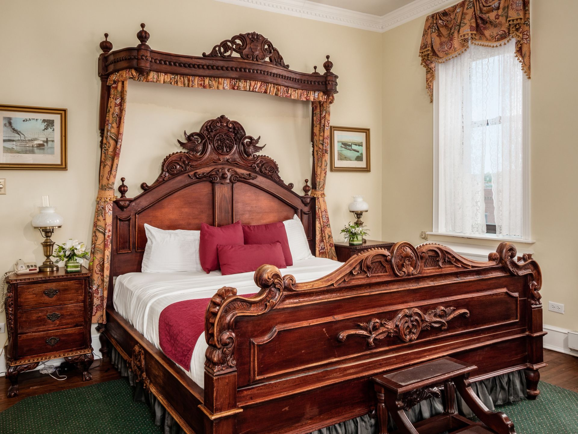 Embrace the ultimate in comfort and luxury with our highly sought-after Riverview Deluxe Suites with Balconies. This exceptional room presents a king-sized bed, a private balcony, and a parlor area where guests can relax in a cozy sitting space while immersing themselves in the awe-inspiring vistas of the Ohio River.